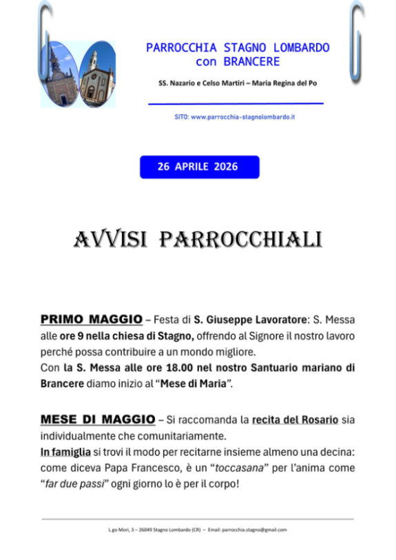 avvisi e locandine - parrocchia stagno lombardo